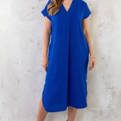 Product: Wauw! In deze jurk komt jouw figuur perfect naar voren! De jurk is voorzien van een kleine colkraag, een gedrapeerd detail en veel stretch.