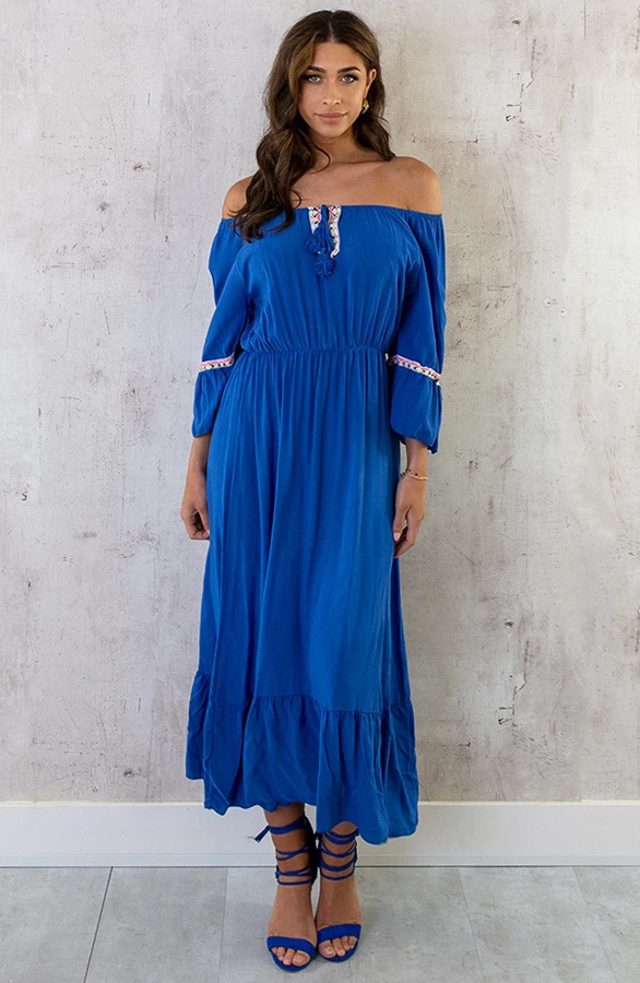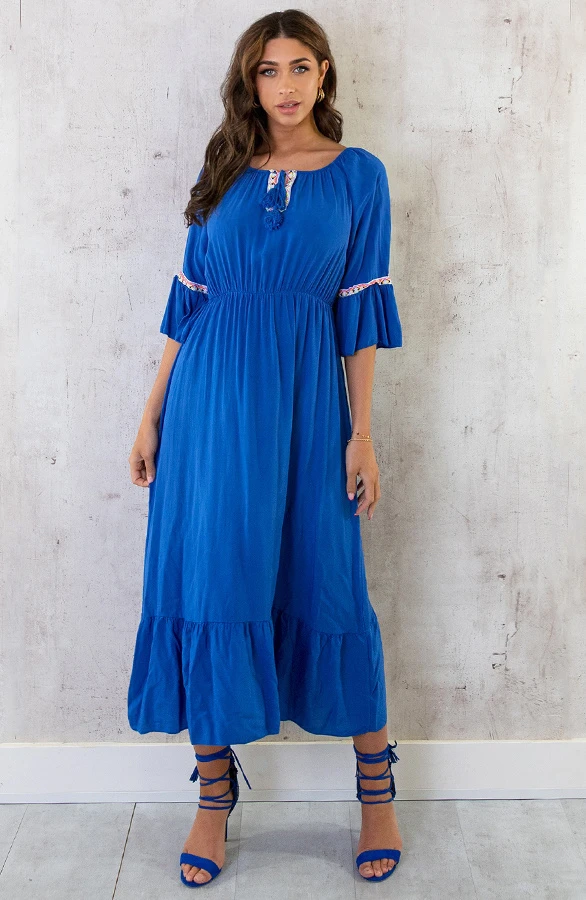 Product: Deze jurk is perfect voor het aankomende seizoen! De maxijurk is voorzien van driekwart mouwen en elastiek in de taille.