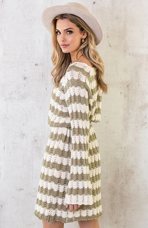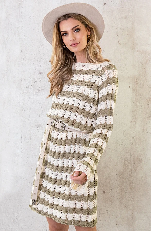 Product: Dé Musthave van dit moment! Dit gehaakte jurkje is voorzien van flared mouwen, een ronde hals en een gestreept patroon. Geen tijd voor twijfel ladies! Deze jurkjes …