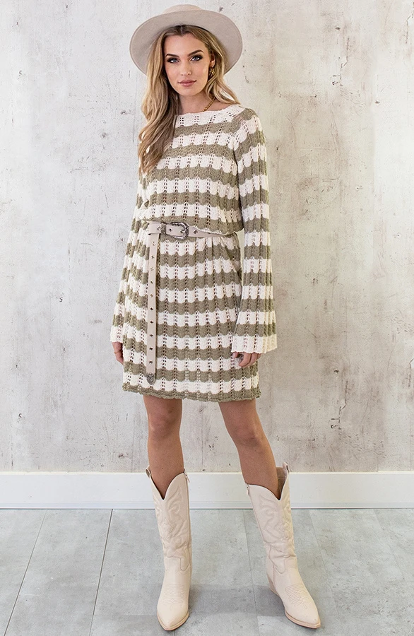 Product: Dé Musthave van dit moment! Dit gehaakte jurkje is voorzien van flared mouwen, een ronde hals en een gestreept patroon. Geen tijd voor twijfel ladies! Deze jurkjes zijn mega gewild!!