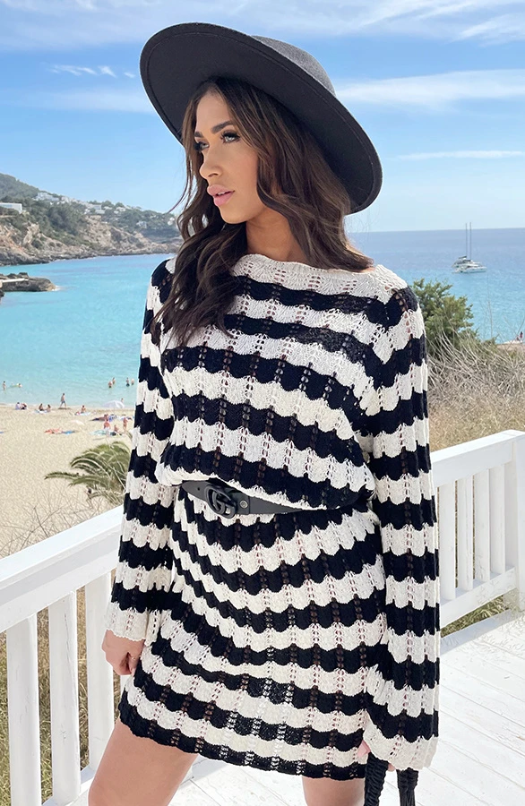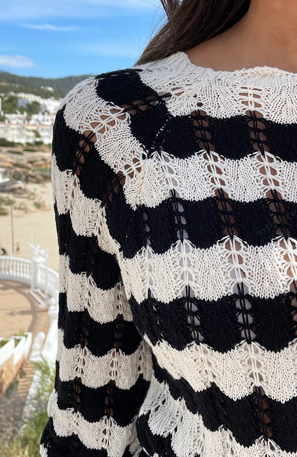 Details: ronde hals, gestreept patroon, doorschijnende stof, gehaakte stof en flared mouwen Materiaal: 100% Katoen