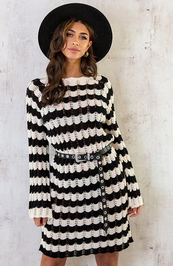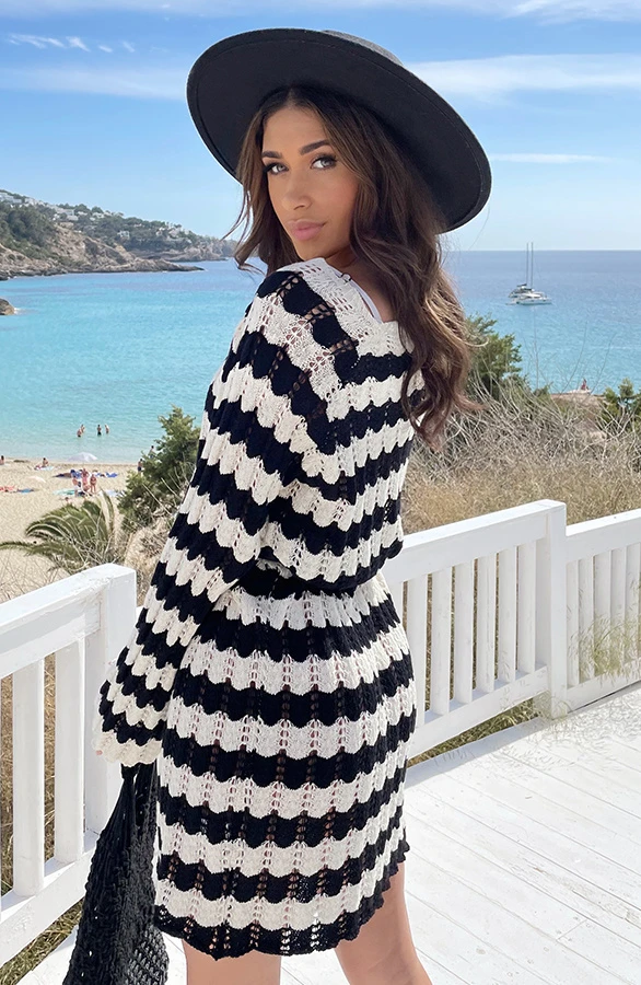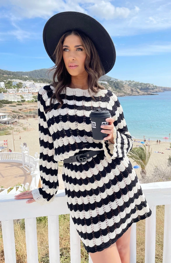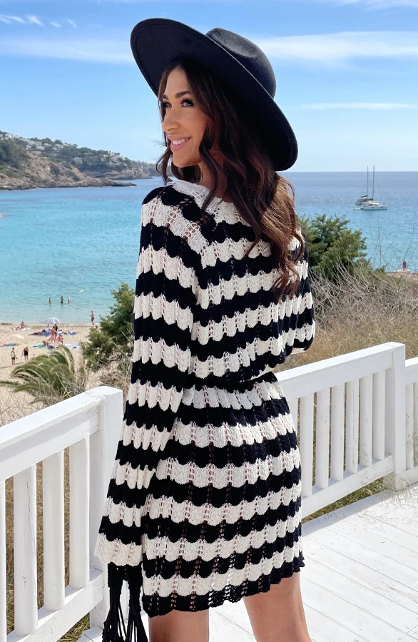 Product: Musthave Alert! Hét jurkje waar iedereen het over heeft! Deze gehaakte jurk is voorzien van flared mouwen en is super leuk om over je bikini te dragen!