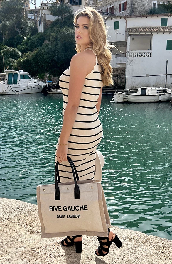 Details: ronde hals, gestreept patroon, stretch, ribstof en golvende rand Materialen: 15% Nylon, 85% Viscose