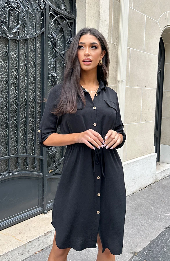 Product: Deze knopen jurk met ceintuur is super trendy en zorgt ervoor dat jij er 100% fashionable bijloopt. Succes gegarandeerd!