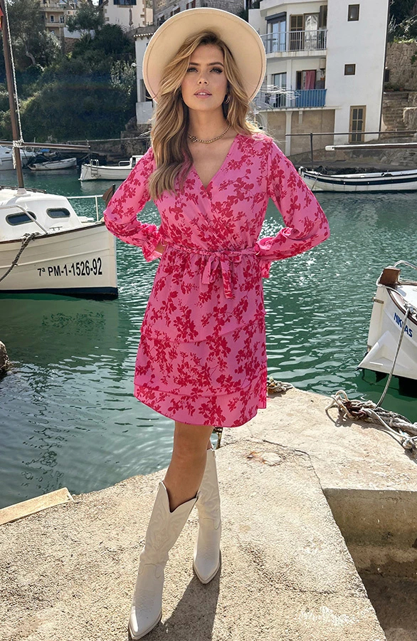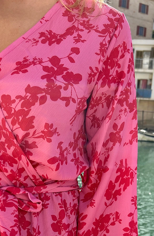 Product: Met dit leuke jurkje steel jij gegarandeerd de show! Het roze rode bloemenjurkje is voorzien van verschillende laagjes en een bijpassend lint om te strikken.