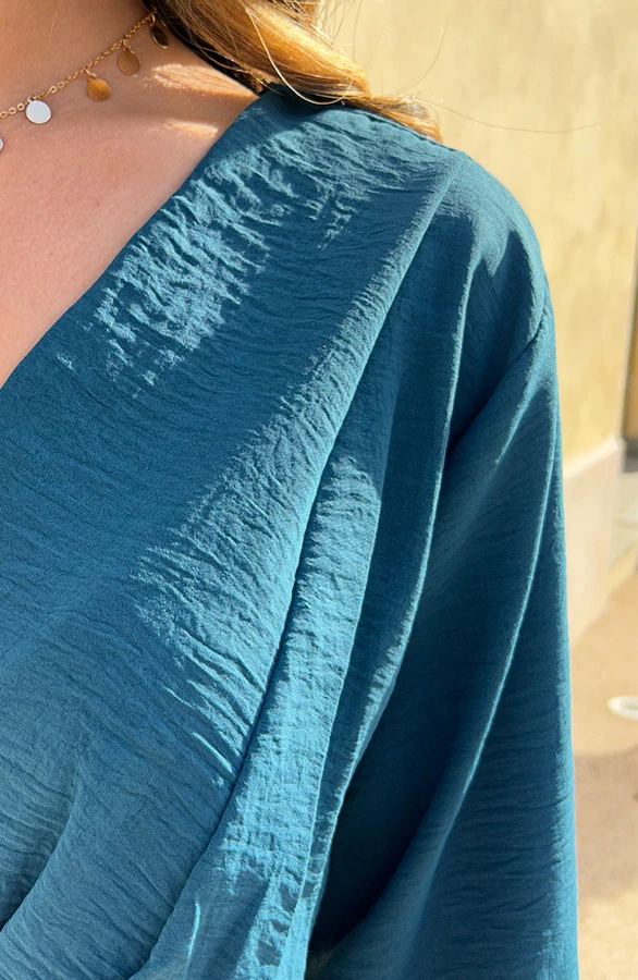 Details: v-hals, lange mouwen, elastiek in de taille en elastiek bij de mouwen Materiaal: 100% Polyester