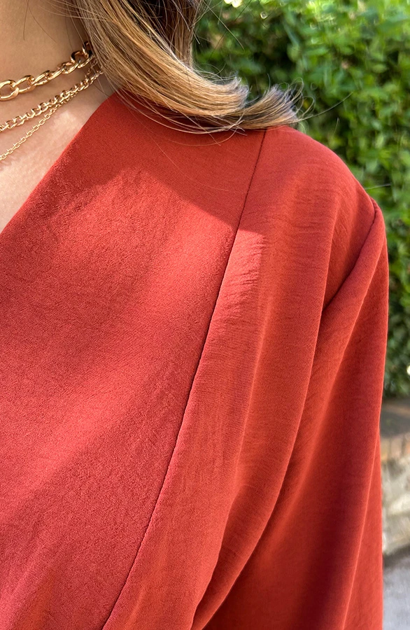 Details: v-hals, lange mouwen, elastiek in de taille en elastiek bij de mouwen Materiaal: 100% Polyester