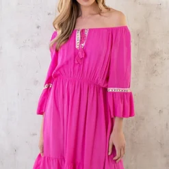 Product: We’ve got it! De perfecte jurk! Perfect voor meerdere gelegenheden. De jurk is voorzien van en v-hals en heeft een lint om te strikken.