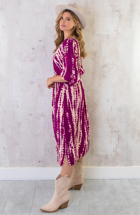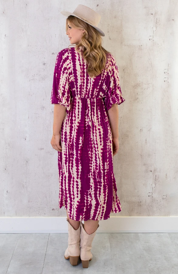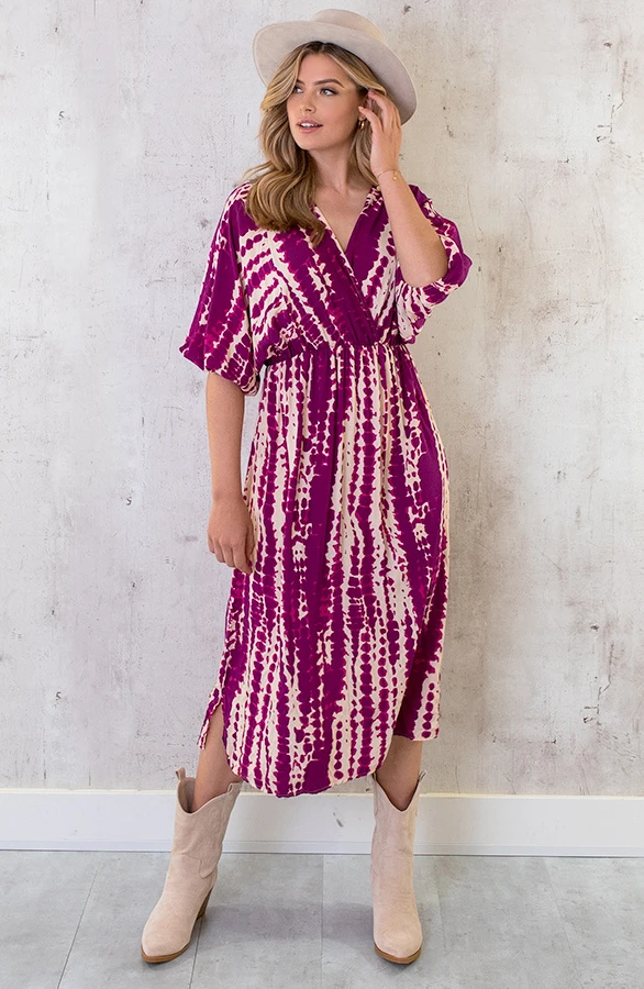 Product: Deze jurk zit mega comfy én je ziet er nog super fashionable uit ook! De v-hals jurk is voorzien van vleermuismouwen.