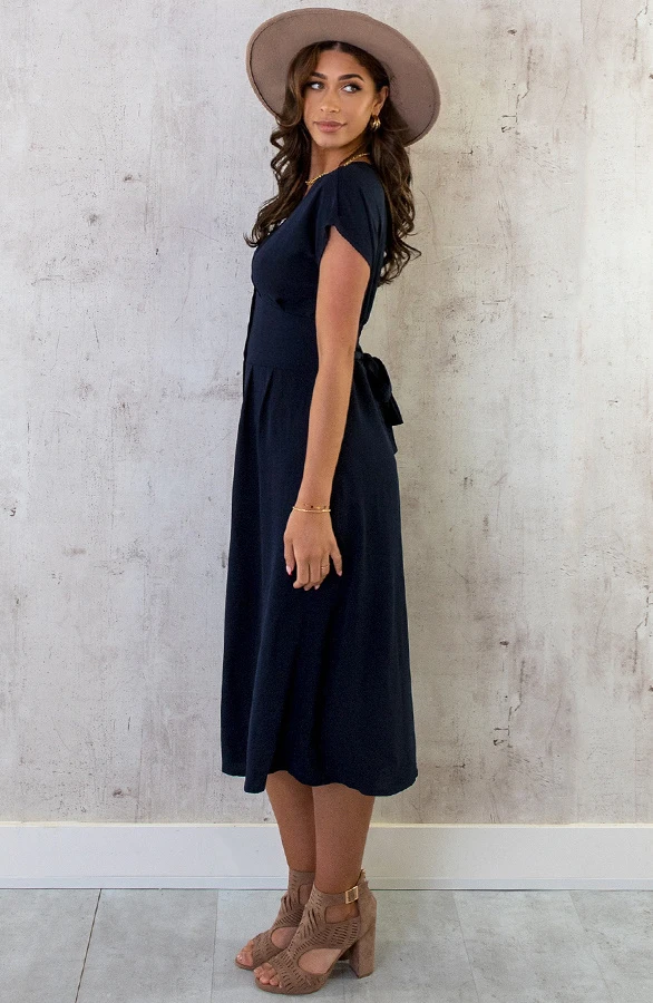 Product: Wauw! Deze classy jurk is een aanwinst voor jouw garderobe! De jurk is voorzien van elastiek op de rug en een bijpassend lint om te strikken.