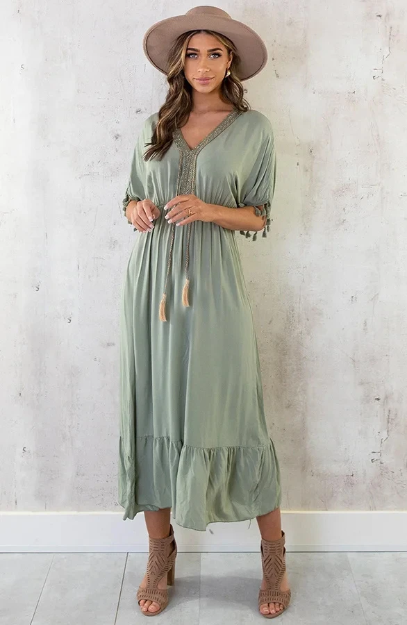 – Oversized Jurk Gouden Detail Maxi Army t.w.v. €39,95