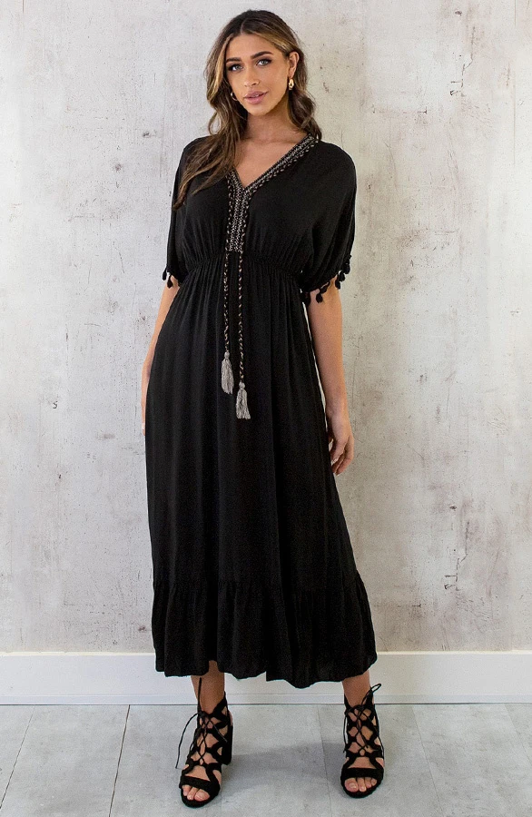 – Oversized Jurk Gouden Detail Maxi Zwart t.w.v. €39,95