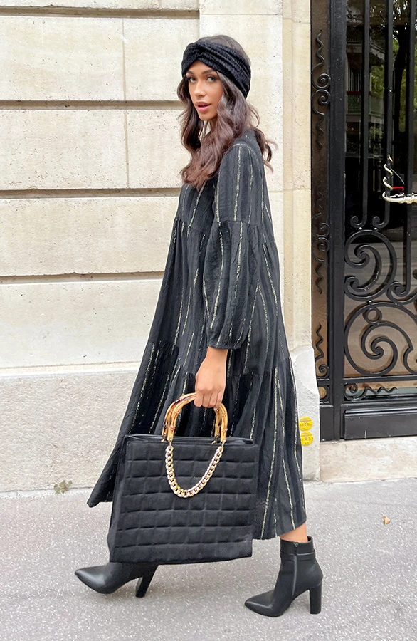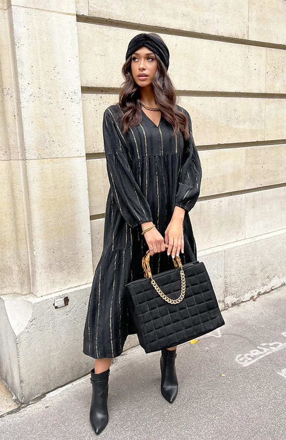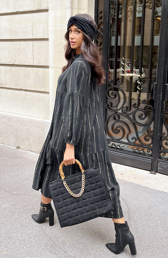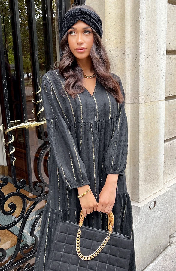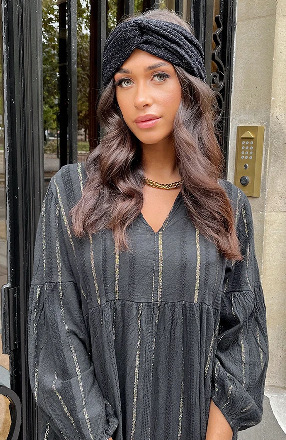 Product: Ohmy! Deze pretty dress is een echte eyecatcher! De jurk heeft een oversized pasvorm en is voorzien van goud glitterdraad.