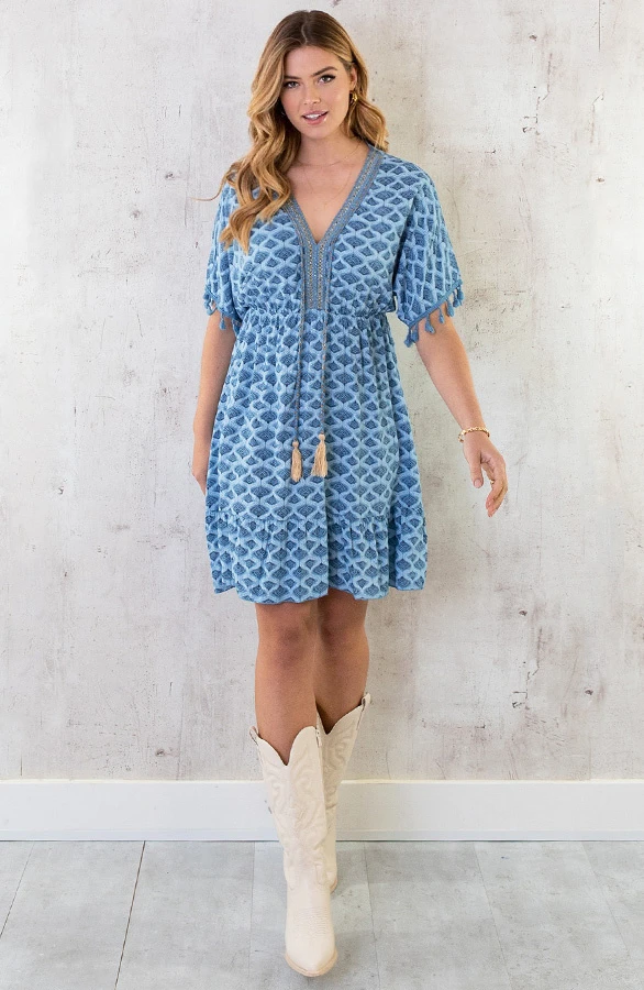 Product: OH-MY, deze jurk.. We LOVE it! De jurk heeft elastiek in de taile en heeft pompons aan de mouwen.