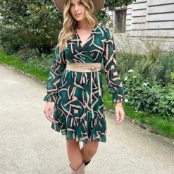 Product: Wauw! Deze jurk met print mag niet ontbreken in jouw garderobe! De jurk is voorzien van lurex details en elastiek in de taille.