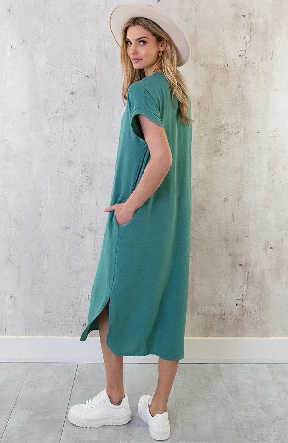 Product: Yay! Onze bestseller is nu ook te shoppen in deze trendy kleur mint! De jurk is voorzien van een split en steekzakken.