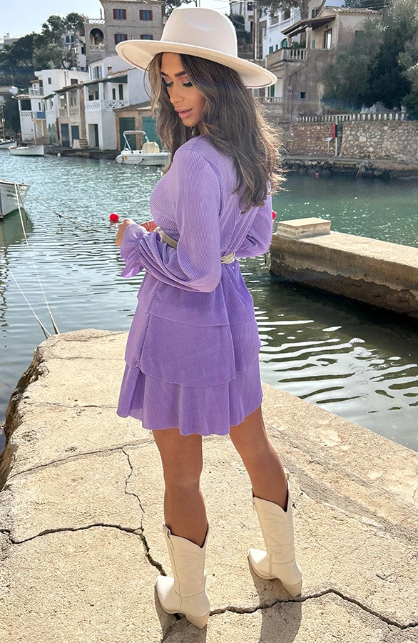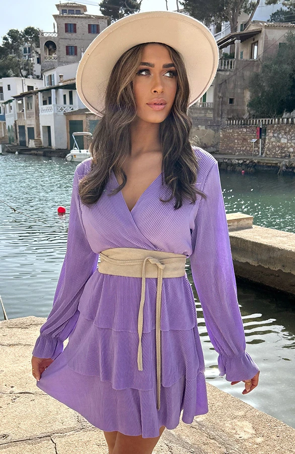 Product: Oohlala! Dit lila jurkje is een múst voor alle fashionista’s! Het plissé jurkje is voorzien van verschillende laagjes en elastiek in de taille.