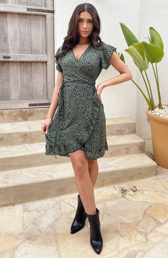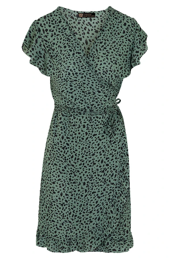 Product: Dit wikkeljurkje is een aanwinst voor jouw garderobe! De cheetah jurk is voorzien van een v-hals, een overslag en een lint om te strikken.